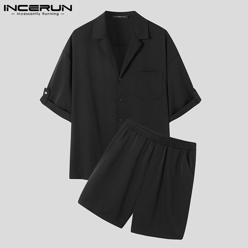 RisingHope Korea INCERUN 2PCS Mens Short Sleeve T Shirts Short Sleerwear Sets Sports Tracksuit Lounge Suit